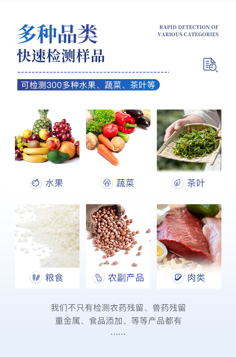 綜合農(nóng)藥殘留檢測儀,除了遵循國標對有機磷和氨基甲酸酯類農(nóng)藥進行檢測外,還可以針對具體農(nóng)藥進行分項準確檢測,包含阿維菌素,啶蟲脒,噻蟲胺,噻蟲嗪,毒死蜱,氟蟲氰,氧樂果,克百威,甲拌磷、甲基吡啶磷、阿滅丁、雙甲脒、等眾多殺蟲劑化合物。 檢測方法:有機磷和氨基甲酸酯類農(nóng)藥檢測采用酶抑制率比色法,依據(jù)****方法(GB/T5009.199-2003)。乙酰膽堿酯酶和丁酰膽堿酯酶試劑均可以使用,符合****和農(nóng)業(yè)部標準的要求;分項檢測依據(jù)膠體金免疫層析法對眾多的每種殺蟲劑進行快速準確檢測。 廣泛應(yīng)用于主要用于蔬菜、水果、茶葉、糧食、農(nóng)副產(chǎn)品等食品中有機磷和氨基甲酸酯類農(nóng)藥殘留的快速檢測;此外還可用于果蔬茶生產(chǎn)基地和農(nóng)貿(mào)批發(fā)銷售市場現(xiàn)場檢測,餐館、學校、食堂、家庭果蔬加工前的安全速測等。