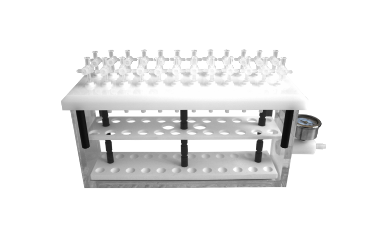 | *固相萃取裝置整機由透明有機玻璃制作,耐腐蝕性強。 | *真空槽其壁厚均勻故可承受-0.096Mpa 以上的高負壓,長期高壓使用不變形。 | *各處受壓均勻, 氣密性好,穩(wěn)定性強。 | *萃取速度一致性好、控制調(diào)整方便。 | *多通道可獨立控制, 接頭耐腐蝕。 | *產(chǎn)品內(nèi)部試管架由聚四氟制成故有耐腐蝕性。 |