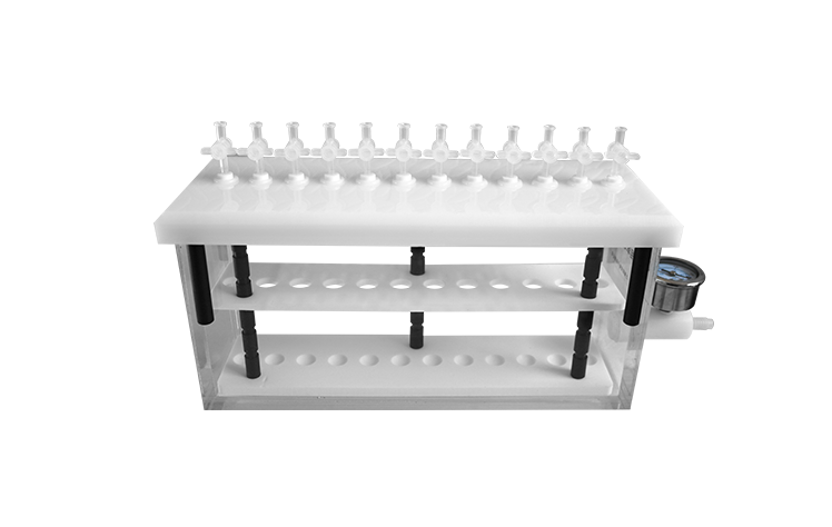 | *固相萃取裝置整機由透明有機玻璃制作,耐腐蝕性強。 | *真空槽其壁厚均勻故可承受-0.096Mpa 以上的高負壓,長期高壓使用不變形。 | *各處受壓均勻, 氣密性好,穩定性強。 | *萃取速度一致性好、控制調整方便。 | *多通道可獨立控制, 接頭耐腐蝕。 | *產品內部試管架由聚四氟制成故有耐腐蝕性。 |