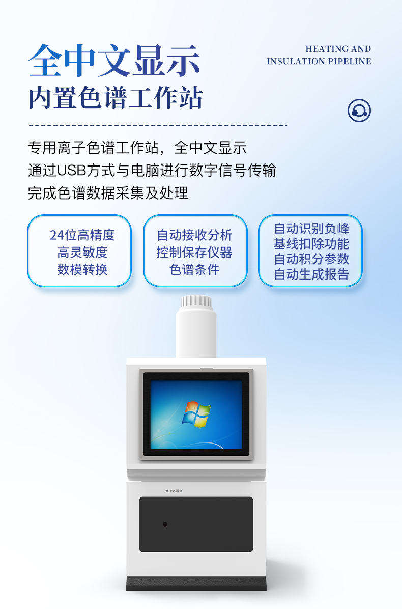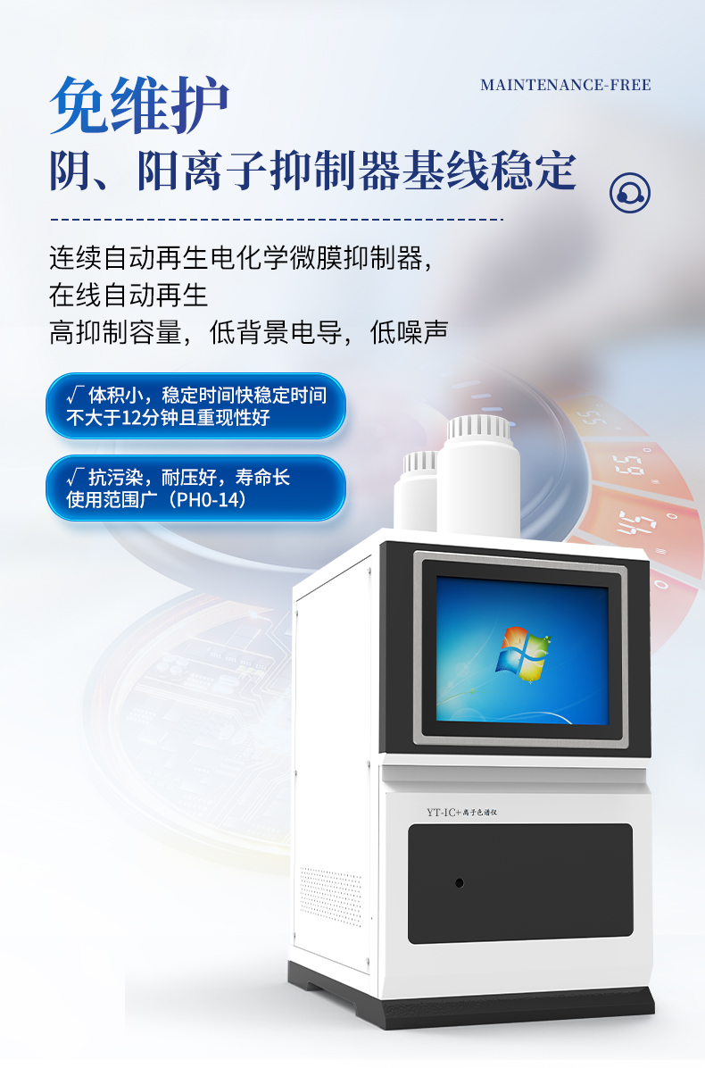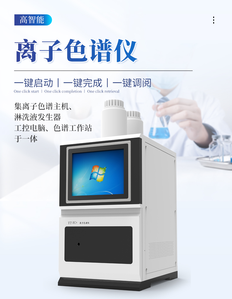| 我們公司作為離子色譜儀器市場的新業態,一直致力于為用戶提供更快捷、優質的儀器,以保障實驗室的建設和運行。始終堅持以客戶為中心,為有檢測需求的客戶服務。物美價廉、響應迅捷、服務全面。 | 全新一代離子色譜儀,采用12.1吋純平工控電腦一體機設計(用戶不需要配電腦),實時顯示儀器運行參數和狀態;一鍵啟動電動閥進樣,一鍵完成儀器開關機、維護等操作,一鍵調閱儀器操作教程,方便快捷。 | 離子色譜儀核心零部件自主研發、自主知識產權可控。采用一體化設計,集離子色譜主機、淋洗液發生器、工控電腦、色譜工作站于一體,結構緊湊,流路*短,對流路造成的峰型擴展有很好的改善。一體化恒溫箱:色譜柱、抑制器、電導池、放大電路都處于同一恒溫系統,改善了電導檢測器的溫飄和基線噪聲。內置多處漏液報警器和缺水報警器,全方位安全監控。由PLC控制的各個部件統一到電腦顯示屏的集中軟件控制系統,操作方便,鼠標所見即所控。 |