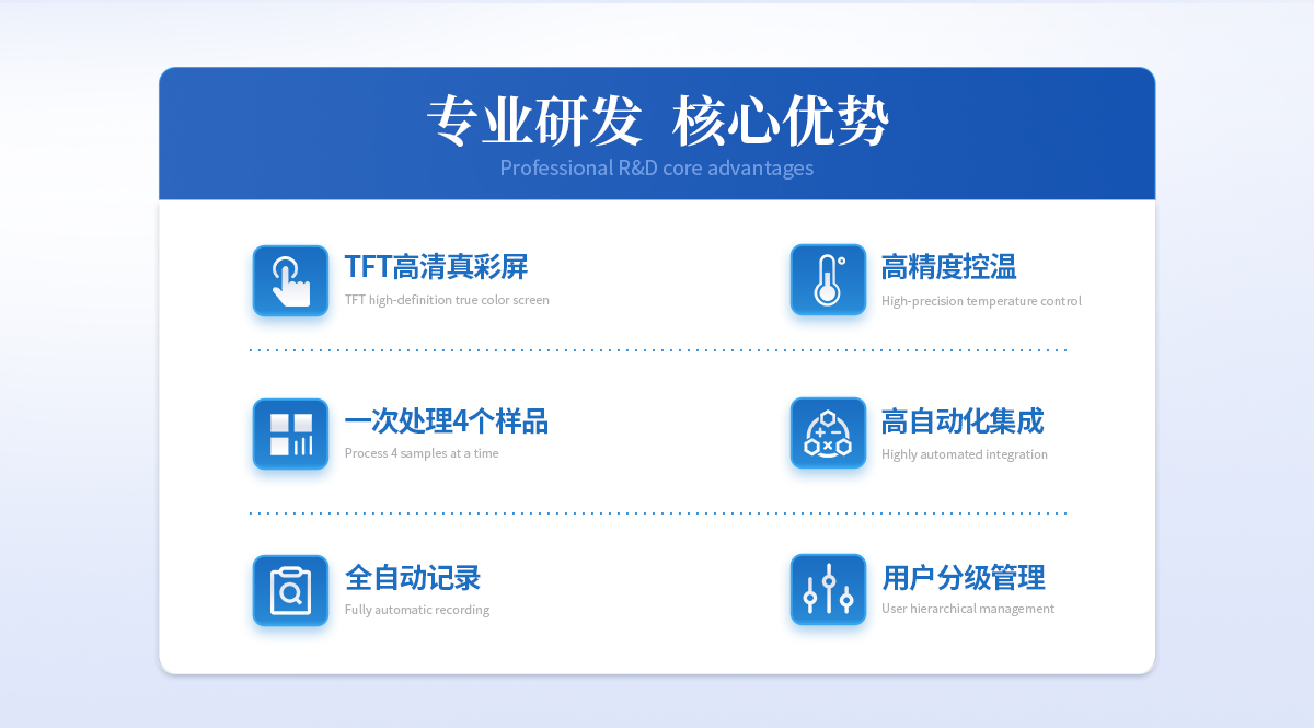 1、自動化集成,實現一鍵測定功能;2、一次處理4個樣品;3、高清視頻代替傳統顯微鏡 目視高;4、半自動記錄熔程,初熔,終熔;5、可通過打印機直接打印數據;6、符合21CFR Part 11、審計追蹤、藥典及電子簽名7、符合GLP要求規范;8、符合藥典2015。