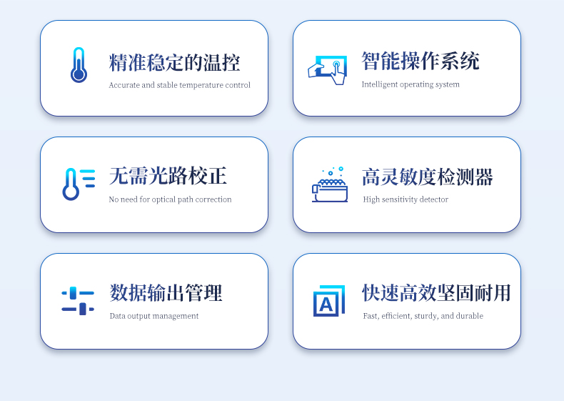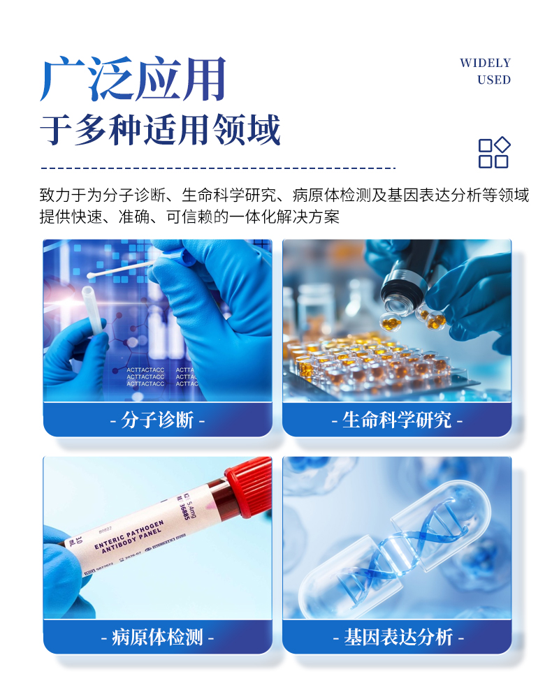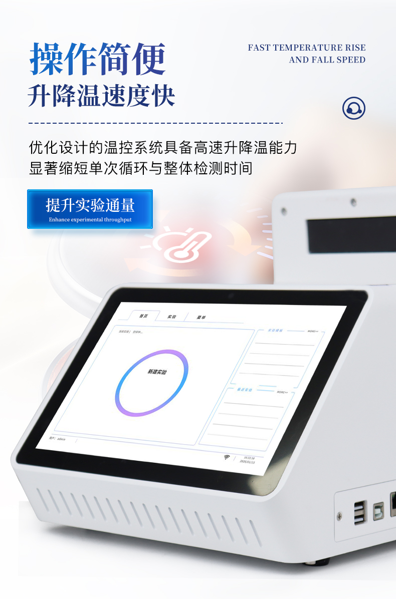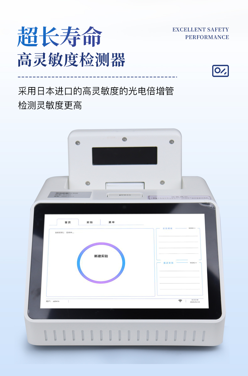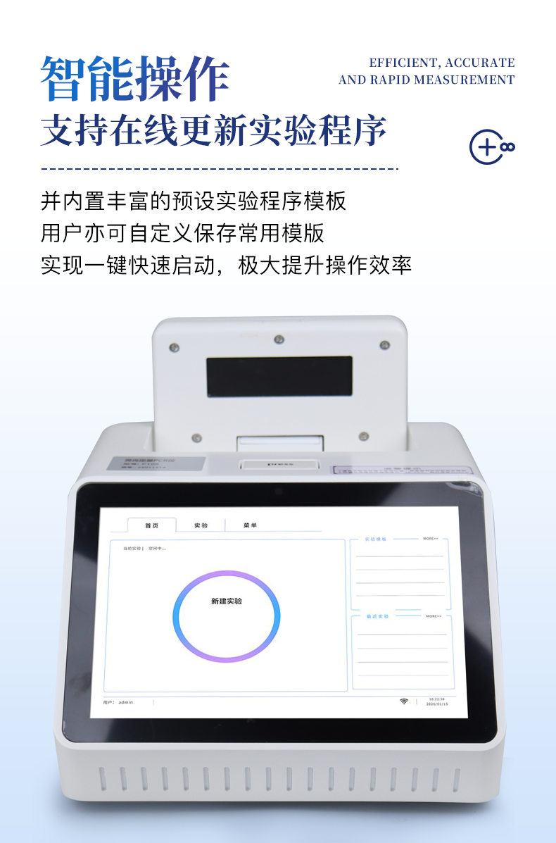 1.智能操作系統(tǒng),實驗盡在掌握A程序更新與預(yù)設(shè):支持在線更新實驗程序,并內(nèi)置豐富的預(yù)設(shè)實驗程序模板,用戶亦可自定義保存常用模版,實現(xiàn)一鍵快速啟動,極大提升操作效率。B操作簡單:無論是觸摸屏界面還是電腦軟件,均設(shè)計得直觀易懂,新用戶也能快速上手。預(yù)置常用程序模板,進(jìn)一步簡化操作流程。2.精準(zhǔn)穩(wěn)定的溫控與光學(xué)核心A長久精準(zhǔn)的溫控系統(tǒng):采用進(jìn)口***TEC半導(dǎo)體制冷模塊,控溫精準(zhǔn)(±0.1°C),孔間溫度均勻性**(≤±0.3°C)。系統(tǒng)穩(wěn)定性卓越,長期使用性能衰減小,校準(zhǔn)周期長達(dá)數(shù)年,顯著降低維護(hù)成本與運營中斷。B免維護(hù)的靈敏光學(xué)系統(tǒng):配備單個獨立LED光源與單個獨立光電二極管檢測器,采用超長壽命進(jìn)口光源,設(shè)計壽命期內(nèi)免維護(hù),無需額外校準(zhǔn)或更換,保障檢測結(jié)果長期一致性與高靈敏度。C卓越的數(shù)據(jù)質(zhì)量:實驗線性相關(guān)性高(R2≥0.999),重復(fù)性優(yōu)異(孔間CV值低),確保定量結(jié)果準(zhǔn)確可靠,數(shù)據(jù)置信度高。 3.**便捷的數(shù)據(jù)與輸出管理A多重數(shù)據(jù)導(dǎo)出方式:支持通過USB存儲設(shè)備直接拷貝,或經(jīng)由Wi-Fi無線網(wǎng)絡(luò)傳輸數(shù)據(jù)至本地服務(wù)器或云端,方便靈活,滿足各類實驗室數(shù)據(jù)管理習(xí)慣。B豐富的報告導(dǎo)出與打印:支持生成并導(dǎo)出多種格式(如PDF、Excel)的實驗報告。儀器兼容USB熱敏打印機、藍(lán)牙無線打印機及常規(guī)A4打印機,可直接在儀器上或通過電腦一鍵導(dǎo)出并打印專業(yè)報告,便于結(jié)果存檔與即時分享。4.快速**與堅固耐用A升降溫速度快:優(yōu)化設(shè)計的溫控系統(tǒng)具備高速升降溫能力,顯著縮短單次循環(huán)與整體檢測時間,提升實驗通量。B超長使用壽命:核心部件均選用工業(yè)級耐用材料與設(shè)計,整機運行穩(wěn)定可靠,致力于為用戶提供長久的投資回報。